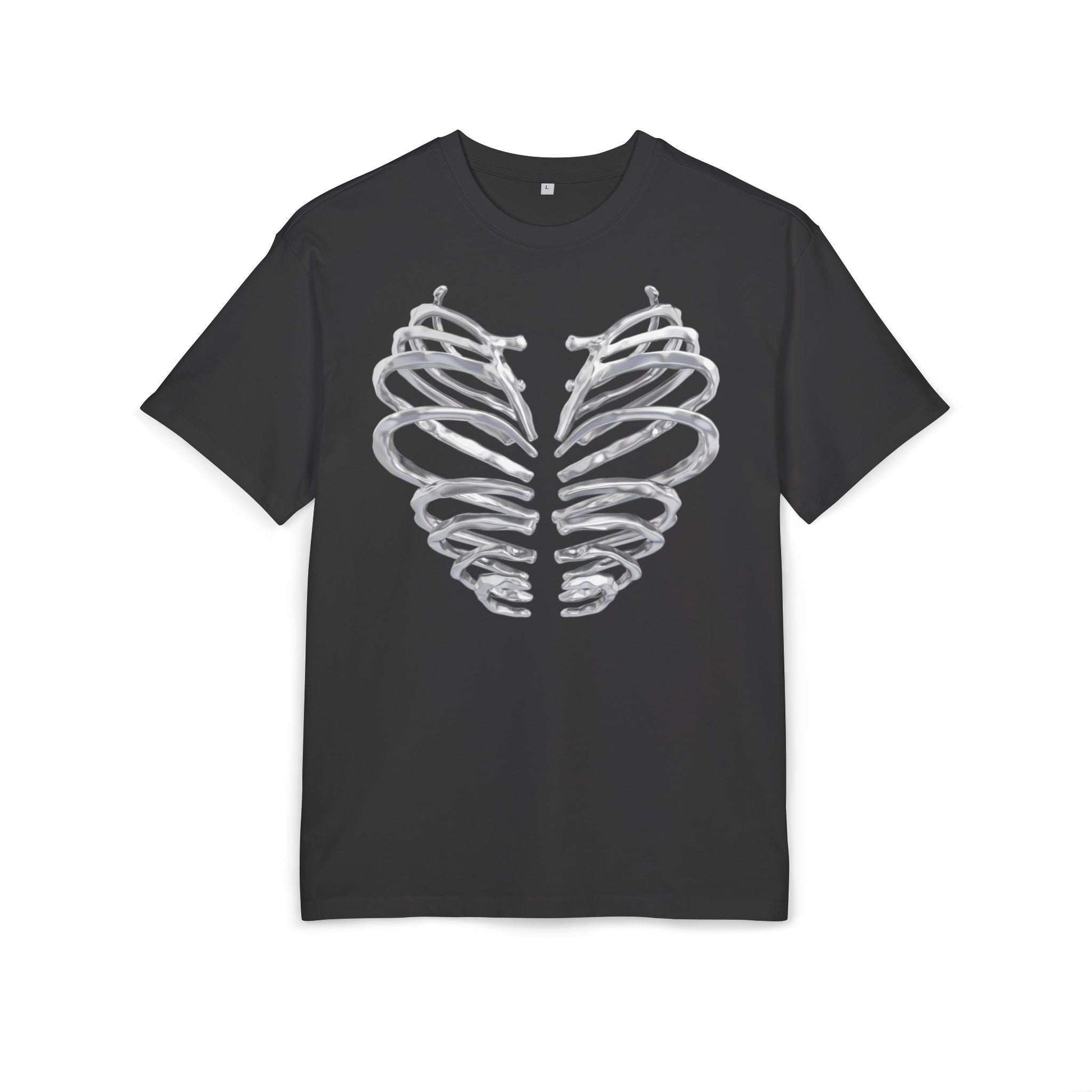 Sa cage thoracique métallique, imprimée à l’avant, représente un cœur protégé par l’acier — un rappel que la force ne vient pas de l’absence de douleur, mais de la capacité à continuer malgré elle.