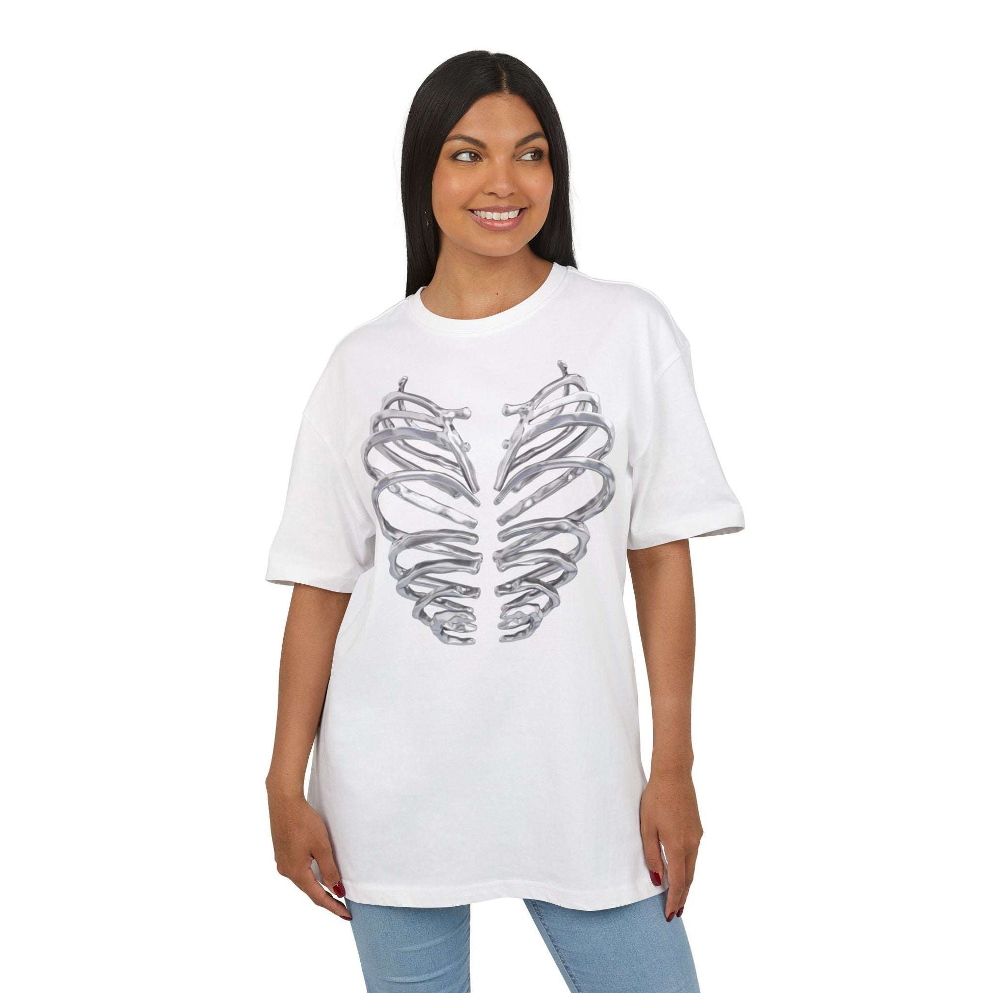 Sa cage thoracique métallique, imprimée à l’avant, représente un cœur protégé par l’acier — un rappel que la force ne vient pas de l’absence de douleur, mais de la capacité à continuer malgré elle.